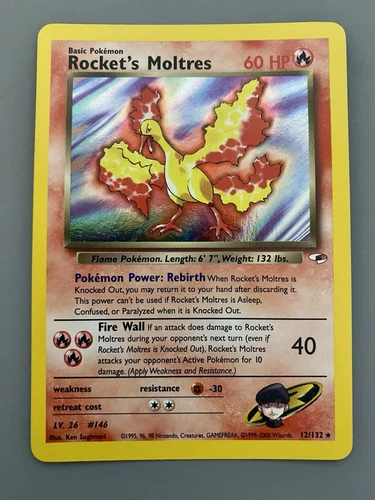 ? Rocket’s Moltres Gym Heroes 12/132 Unlimited Holo Rare 2000 Trading Card!