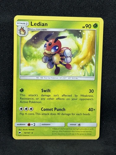 pokemon card - ledian 10/147 reverse holo! burning shadows!