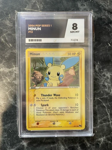Minun 12/17 Pop Series 1 2004 Pokemon Card - Ace Graded NM - Mint 8