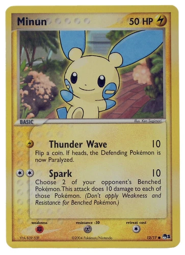 Minun ~ 12/17 ~ Non-Holo ~ POP SERIES 1 ~ LIGHT PLAY ~ Pokemon Card