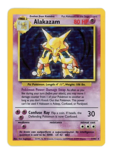 1999 Pokemon, Base Set, #1/102 Alakazam, Holo Rare (d)