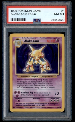 95442039 1999 Pokemon Game 1/102 Alakazam Holo PSA 8 NM-MT