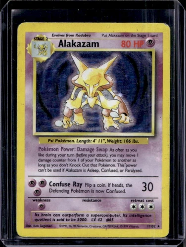 1999 Pokemon, Base Set, #1/102 Alakazam, Holo Rare (d)