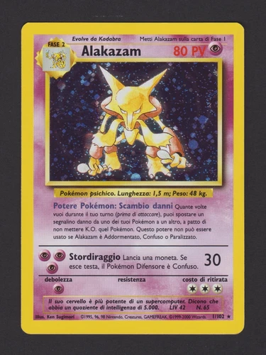Pokemon Alakazam 1/102 Base Set Rare Holo Unlimited Wizards ITA Vintage Cards