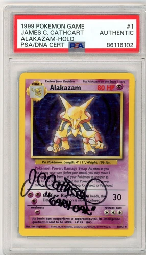 PSA Signed James Carter Cathcart Pokémon Alakazam Base Set 1/102 Holo Rare