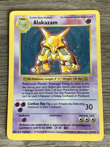 Pokémon Alakazam TCG Holo Rare Card 1/102 Vintage