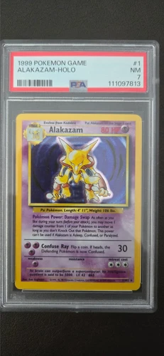 Pokemon TCG Vintage Alakazam 1/102 1999 Base Set Holo Rare WOTC Graded PSA 7 NM
