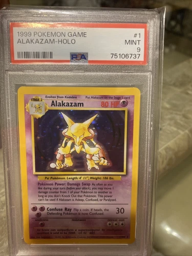 1999 Pokemon Game Alakazam BASE SET Holo Rare 1/102 PSA 9 MINT Condition *RARE*