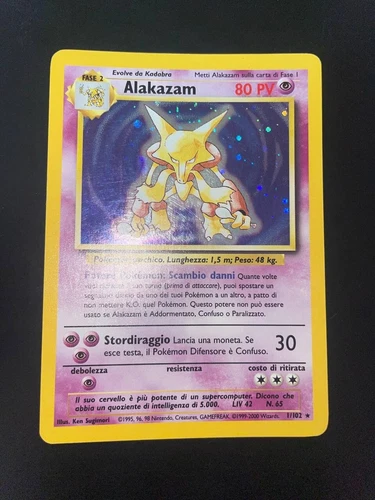 Pokemon Alakazam 1/102 Base Set Rare Holo Unlimited Wizards ITA Vintage Cards