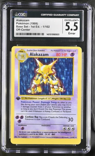 Pokemon CGC 5.5 Alakazam 1/102 1st Edition Holo Rare Base Set Error Off-Center
