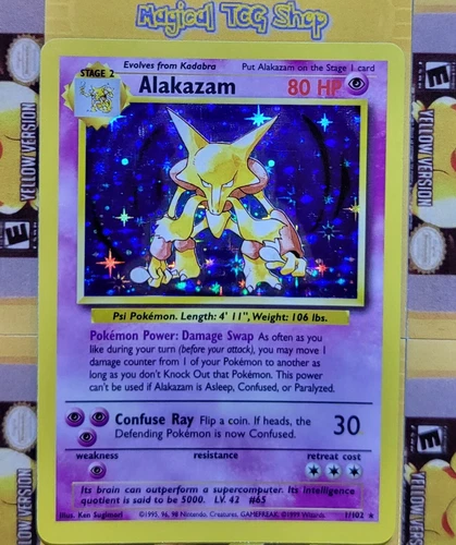 Pokémon TCG Alakazam Base Set 1/102 Holo Shadowless Holo Rare