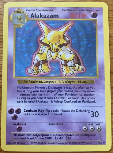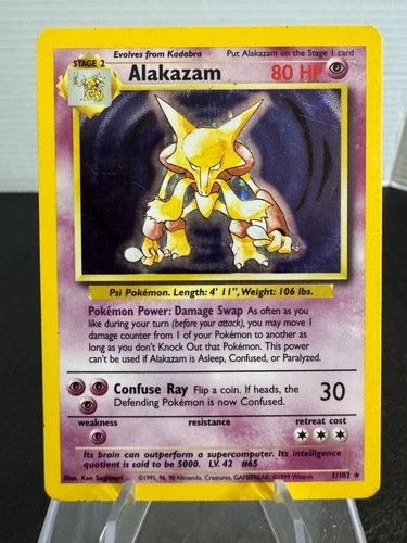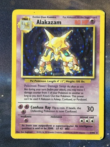 Alakazam 1/102 Base Set Holo Holographic Rare Vintage WOTC 1999 Pokémon MP HP