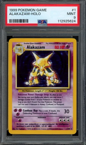1999 POKEMON SET UNLIMITED #1/102 ALAKAZAM RARE HOLO PSA 9
