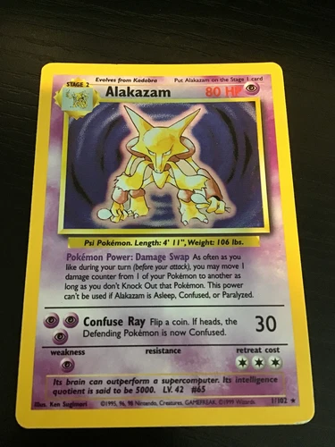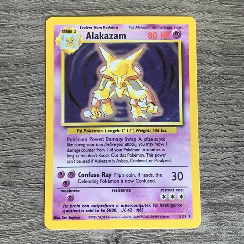 Pokemon TCG Alakazam 1/102 Base Set Unlimited Holo Rare Vintage 1999 WOTC