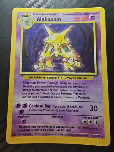 Alakazam 1/102 Base Set Pokemon Card Holo Rare Vintage 1999