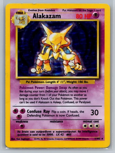 1999 Pokemon, Base Set, #1/102 Alakazam, Holo Rare (d)