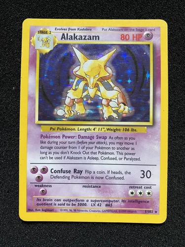 Pokemon TCG Alakazam (Base Set 1/102) WotC Shadowless Holo Rare LP