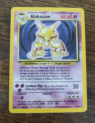 Pokémon Alakazam TCG Holo Rare Card 1/102 Vintage