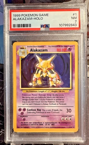 Pokemon TCG Vintage Alakazam 1/102 1999 Base Set Holo Rare WOTC Graded PSA 7 NM