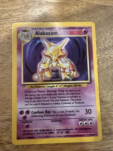 Pokémon Alakazam TCG Holo Rare Card 1/102 Vintage