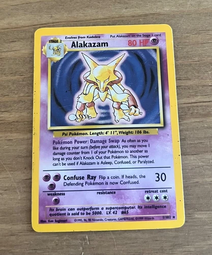Pokemon Card - Alakazam 1/102 Holo Rare Base Set 1999 Vintage 1999 WOTC
