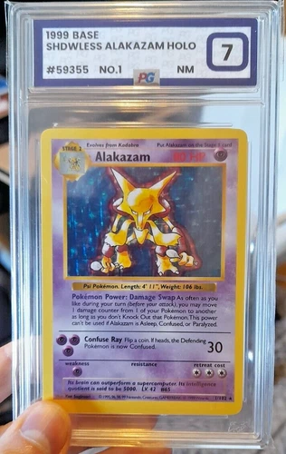 Shadowless Alakazam 1999 Base Set 1/102 Pokegrade PG NM 7 Holo Rare WOTC