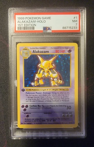 Pokemon TCG Vintage Alakazam 1/102 1999 Base Set Holo Rare WOTC Graded PSA 7 NM