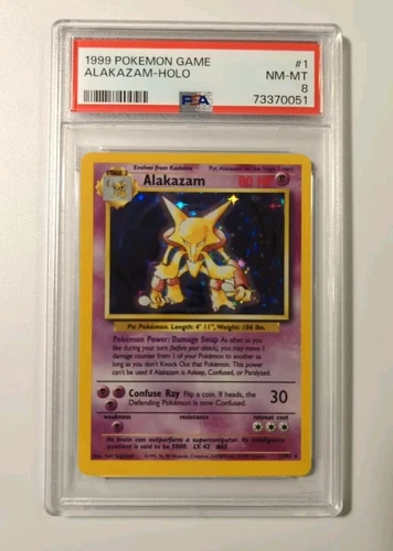 Pokemon Base Set ALAKAZAM 1/102 Rare Holofoil PSA 8 NM-MT 1999 Vintage
