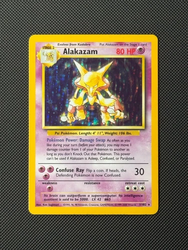 Pokemon Alakazam TCG Holo Rare Card 1/102 Base Set 1999
