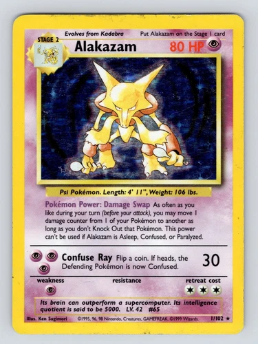 Alakazam 1/102 Holo Rare Base Set Pokemon Card 1999 WOTC