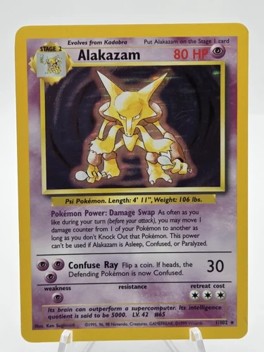 Alakazam Holo 1/102 - 1999 Pokémon Base Set - Vintage WOTC Rare - Damage Swap