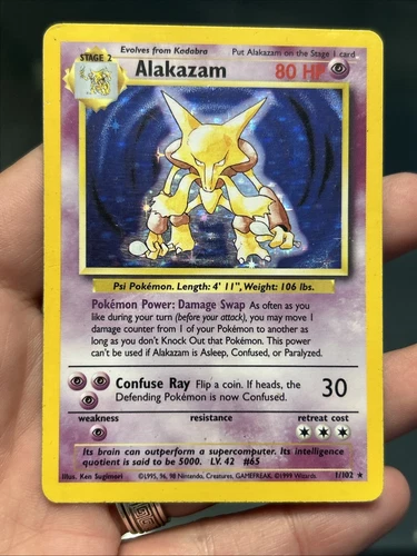 Alakazam Holo 1/102 - 1999 Pokémon Base Set - Vintage WOTC Rare - Damage Swap