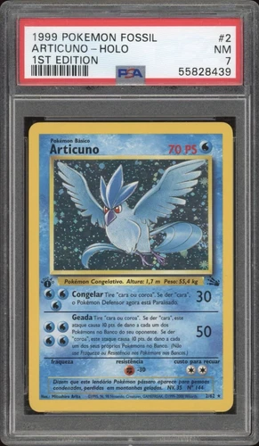 2000 Pokemon PORTUGUESE 1st Edition Fossil Articuno Holo 2/62 PSA 7 NM
