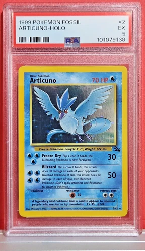 Pokemon 1999 Fossil Articuno - Holo 2/62 PSA 5
