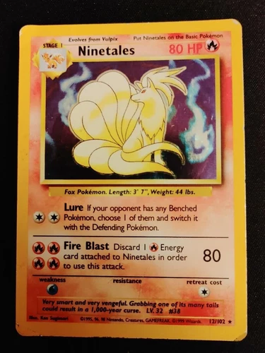 Pokemon Ninetales Holo #12/102 Never Played Perfect Looking 1995