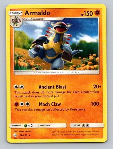 Pokemon ARMALDO 112/236 Cosmic Eclipse RARE - - MINT
