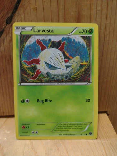 REVERSE HOLO Larvesta 14/114 LP - XY Steam Siege Pokemon Card Tomokazu Komiya