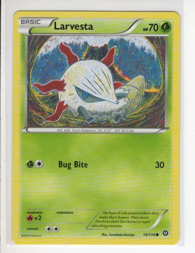 Larvesta 14/114 LP - B2G1F - XY Steam Siege Pokemon Card - Tomokazu Komiya Art