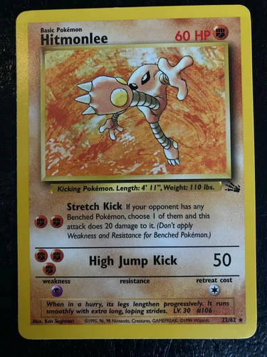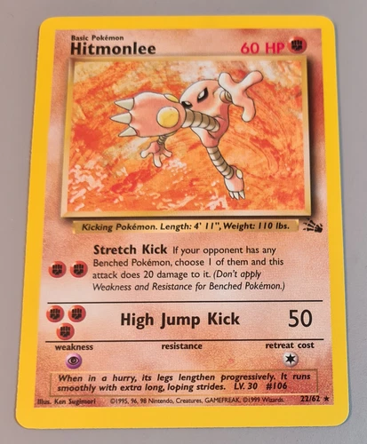 Pokémon TCG Hitmonlee Fossil 22/62 Rare 1999 Wizards Base Set 1st Edition