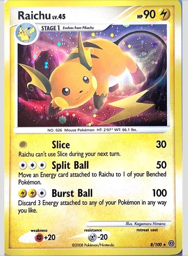 Very Rare! Raichu Holo 2008 8/100 Pokemon TCG CCG Electric Type Pokemon