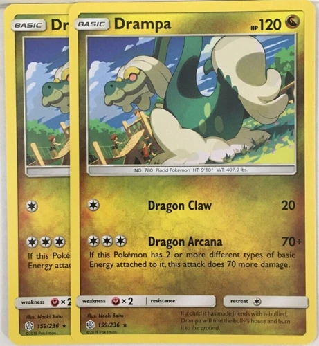 POKEMON 2X DRAMPA 159/236 COSMIC ECLIPSE RARE NEAR MINT