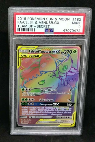 Pokemon SM S&M Team Up Celebi & Venusaur GX 182/181 Full Art Secret Holo PSA 9