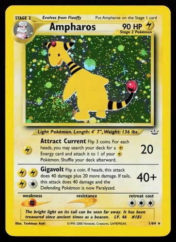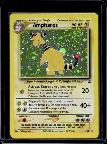 Pokémon TCG Ampharos Neo Revelation 1/64 Holo Unlimited Holo Rare Beckett Rev 9