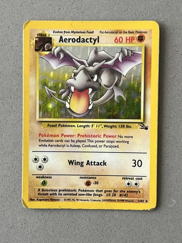 Pokemon Tcg Fossil Holo Rare Aerodactyl 1/62 - HP Heavy Play Vintage Single!