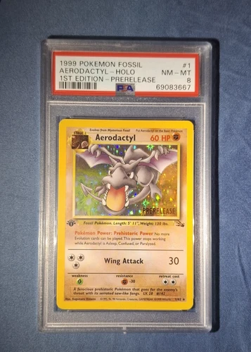 PSA 8 - Aerodactyl 1/62 Prerelease, 1st Edition (1999 Pokemon Fossil)