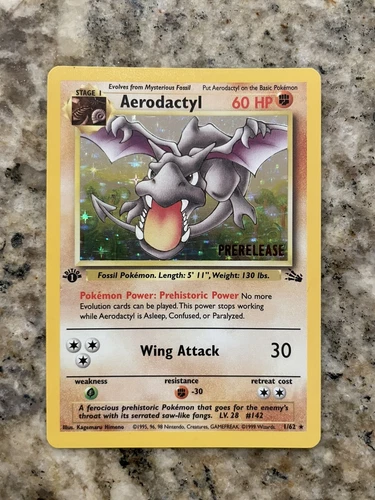 Aerodactyl First Edition Prerelease Holo Rare Pokemon Card Fossil Set 1/62