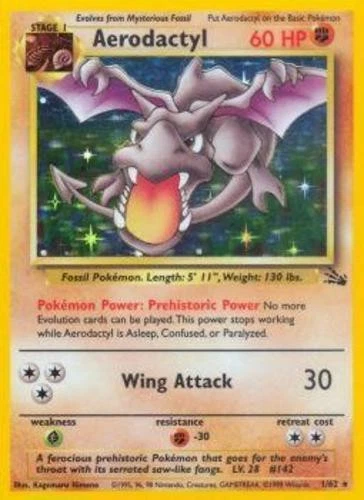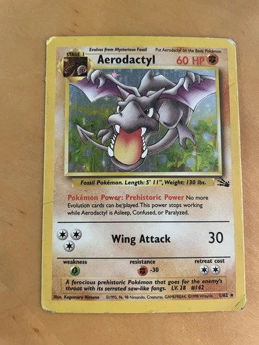 Fossil Aerodactyl 1/62 Pokemon Card - Rare Holo Foil Trading Card Game Collectib