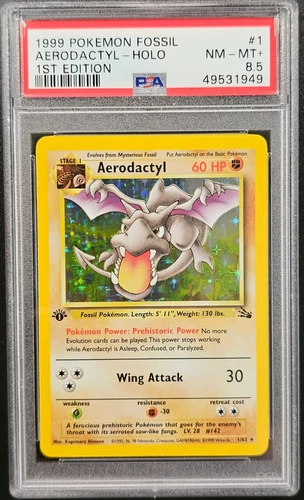 1999 Pokemon Fossil 1 Aerodactyl Holo 1st Edition PSA 8.5 Wizards 1/62