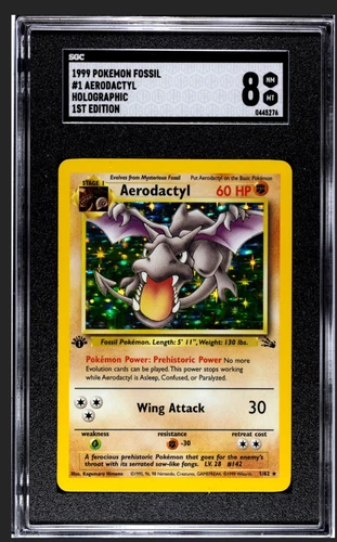 1999 Pokemon Fossil 1st Edition Rare Holo Aerodactyl #1/62 SGC 8 NM MT