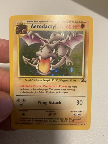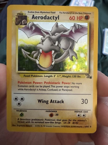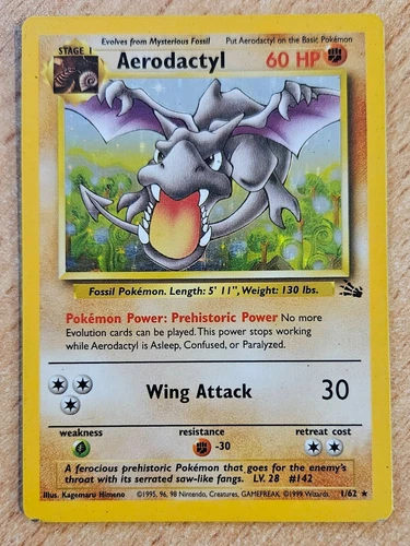 Pokemon Tcg Fossil Holo Rare Aerodactyl 1/62 - HP Heavy Play Vintage Single!
